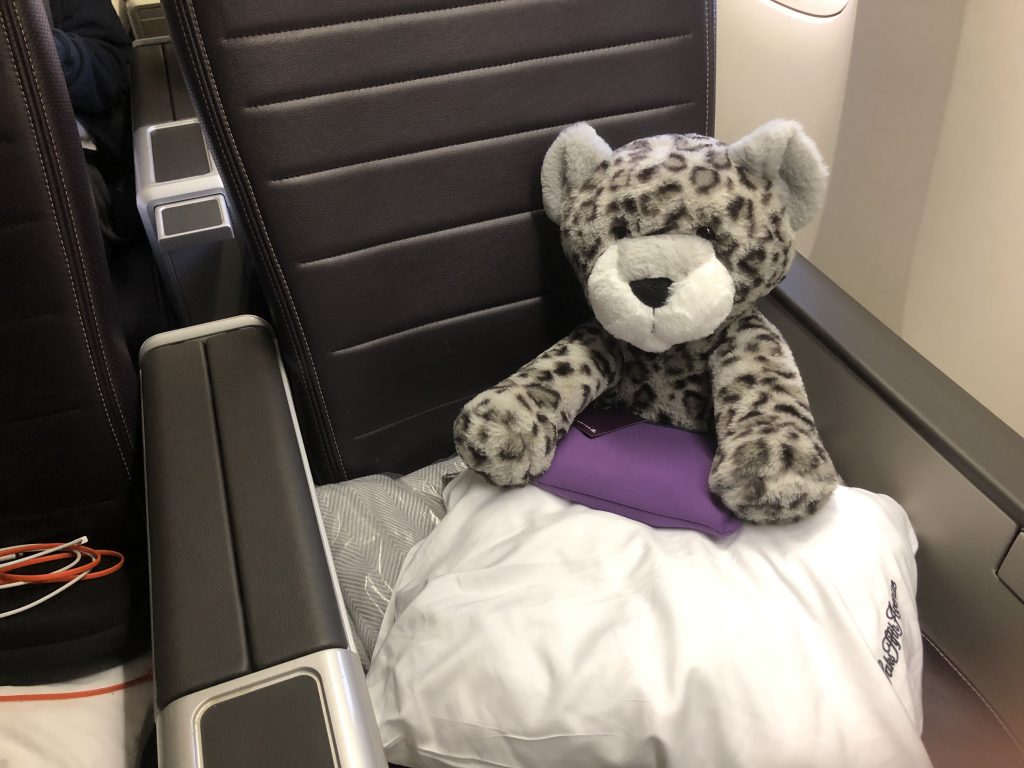 Hier lasse ich es mir in der United Premium Plus gutgehen. Als Leopard von Welt reist man schließlich nicht Holzklasse.