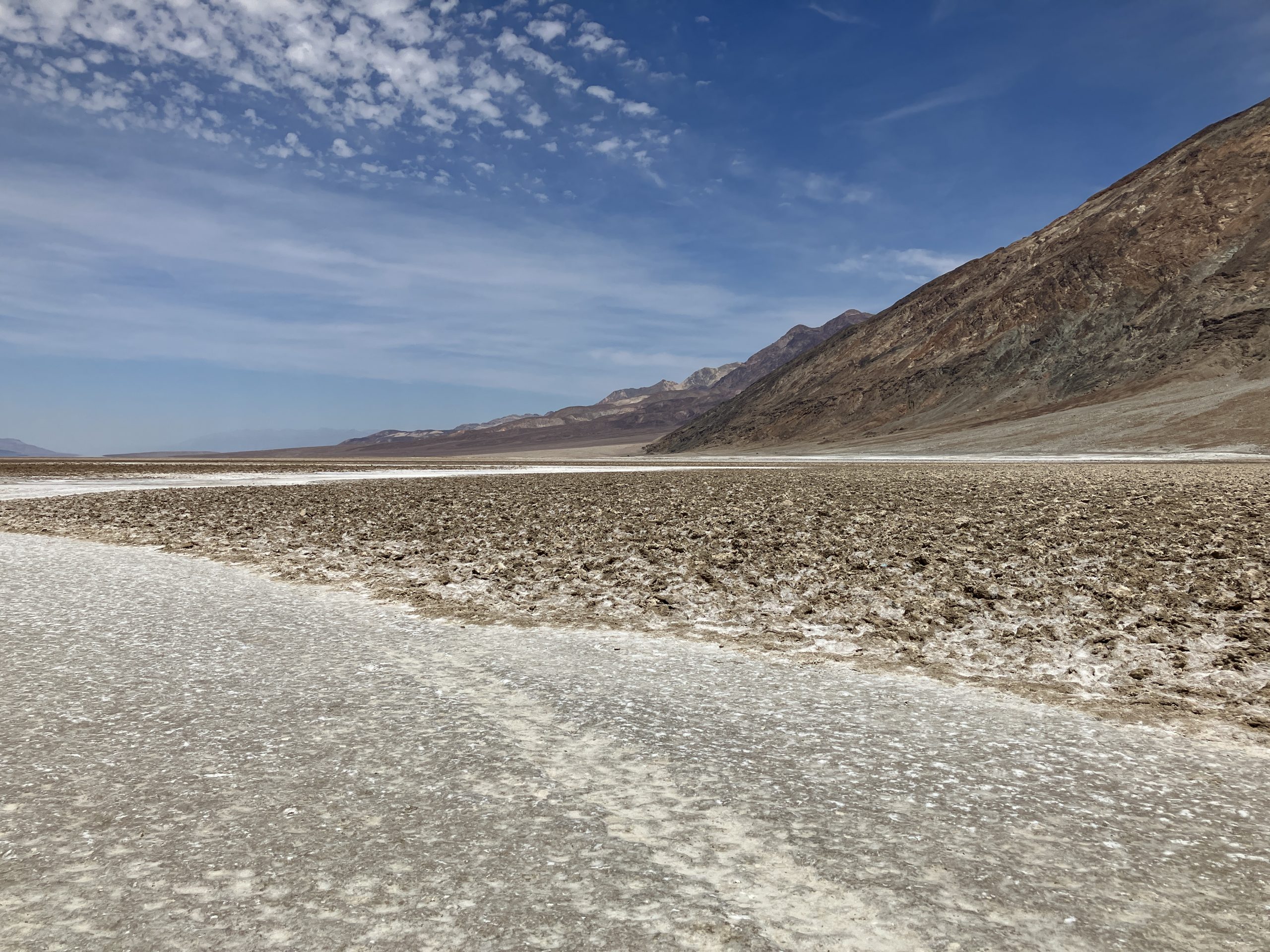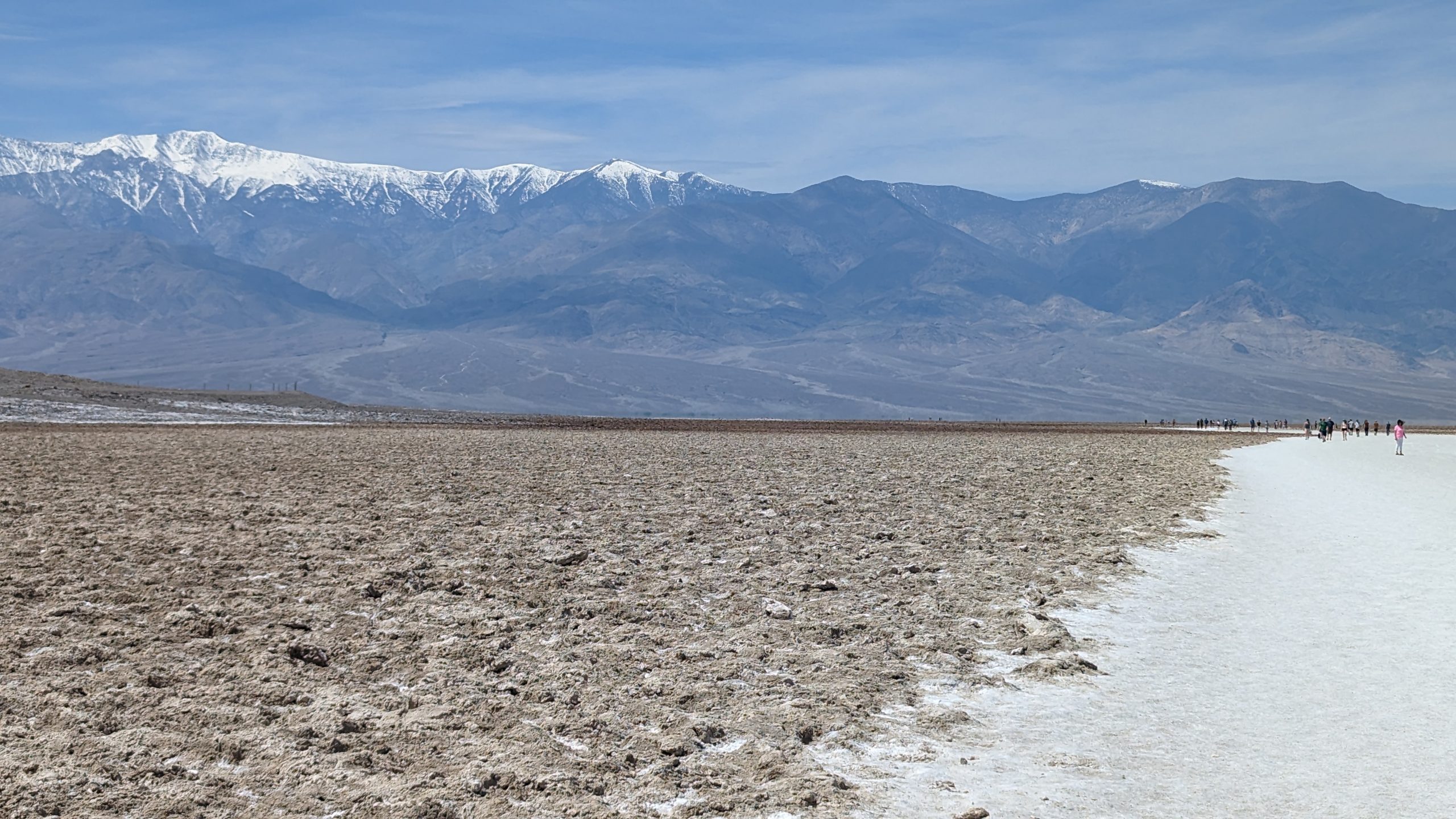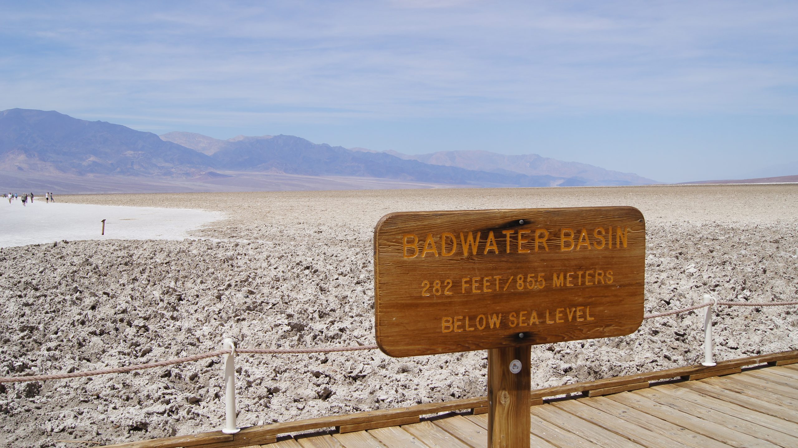 Danach ging es auf direkten Weg zum tiefsten Punkt der Vereinigten Staaten, dem Badwater Basin, 85,5 m unter NN