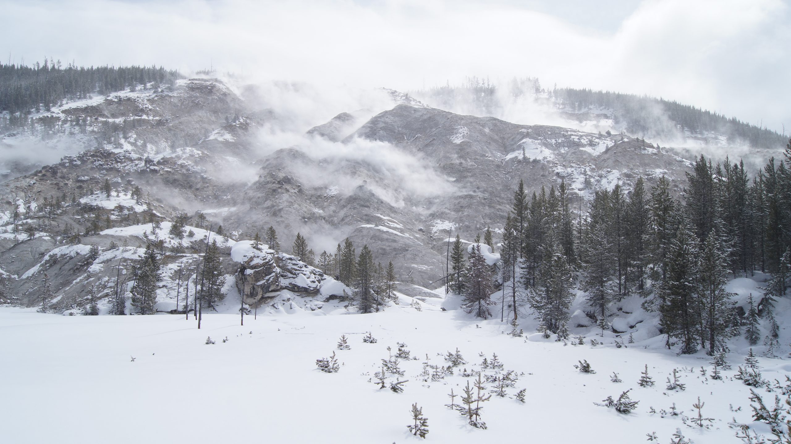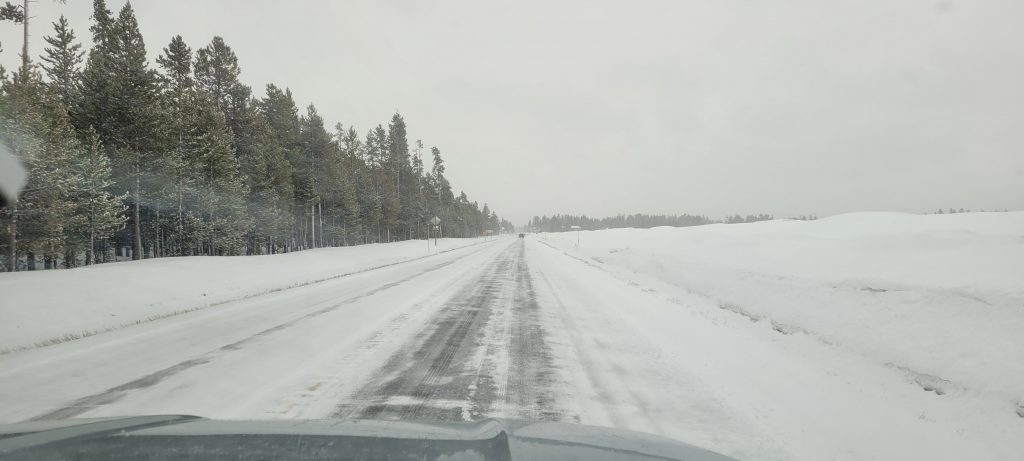 Heute morgen ging es früh los in Richtung Yellowstone Nationalpark. Das Wetter war zu Beginn ausbaufähig, später verzogen sich die Wolken aber immer mal wieder.