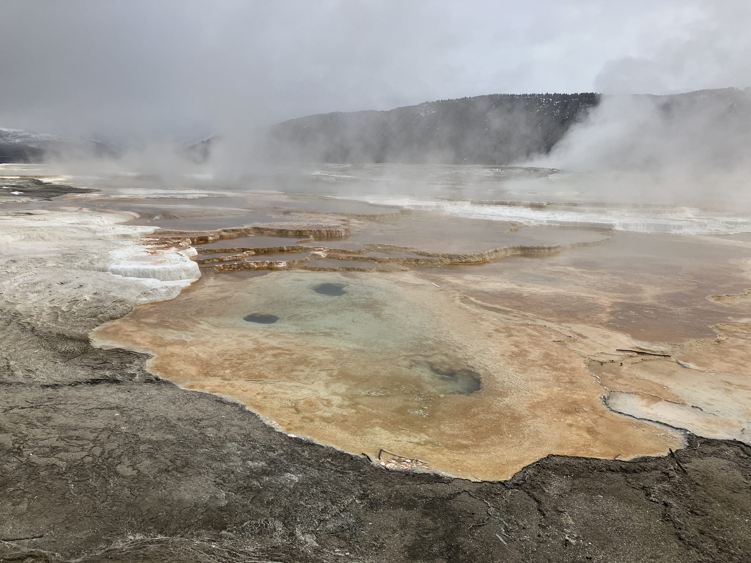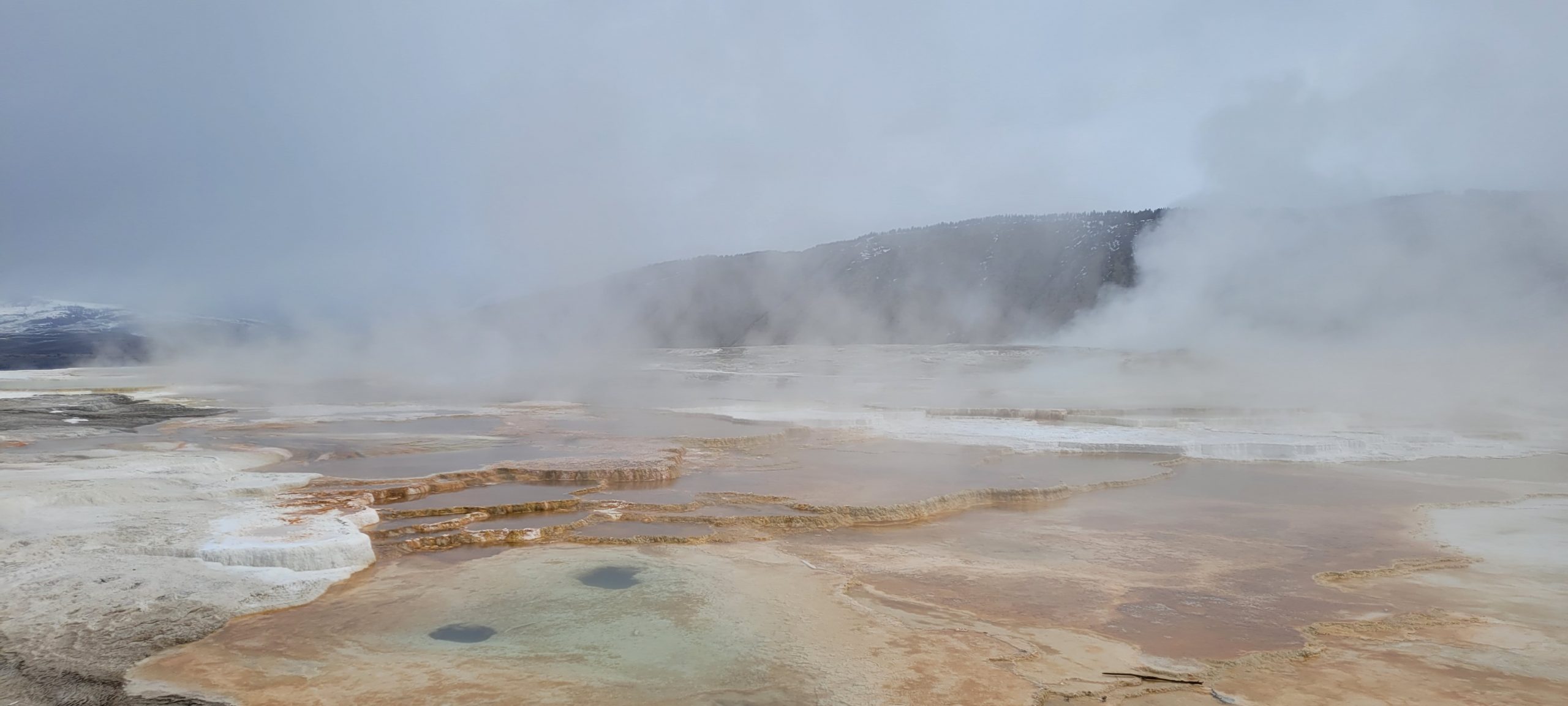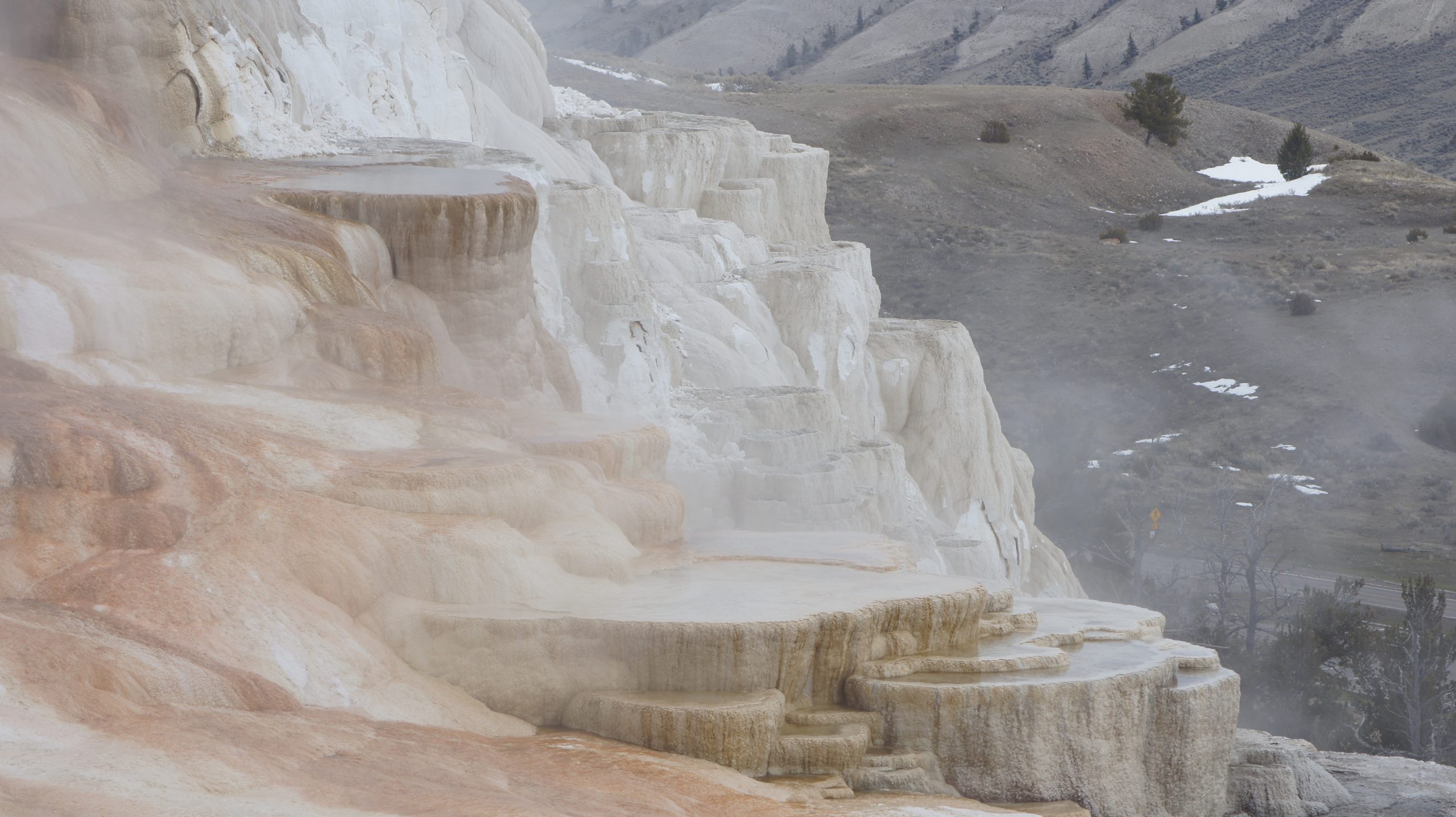 Zuerst sind wir ganz in den Norden gefahren, dort haben wir uns Mammoth Hot Springs angeschaut.