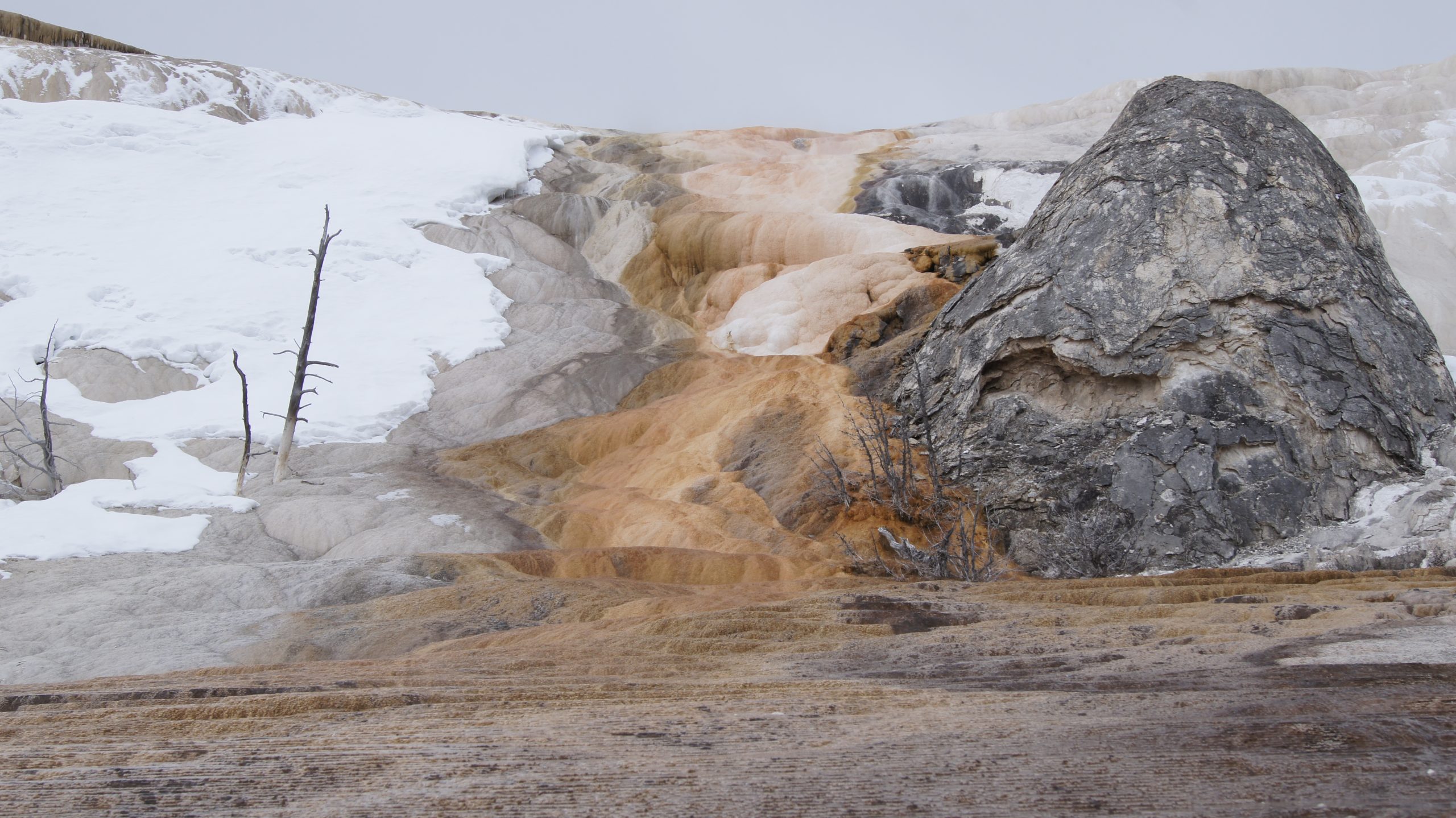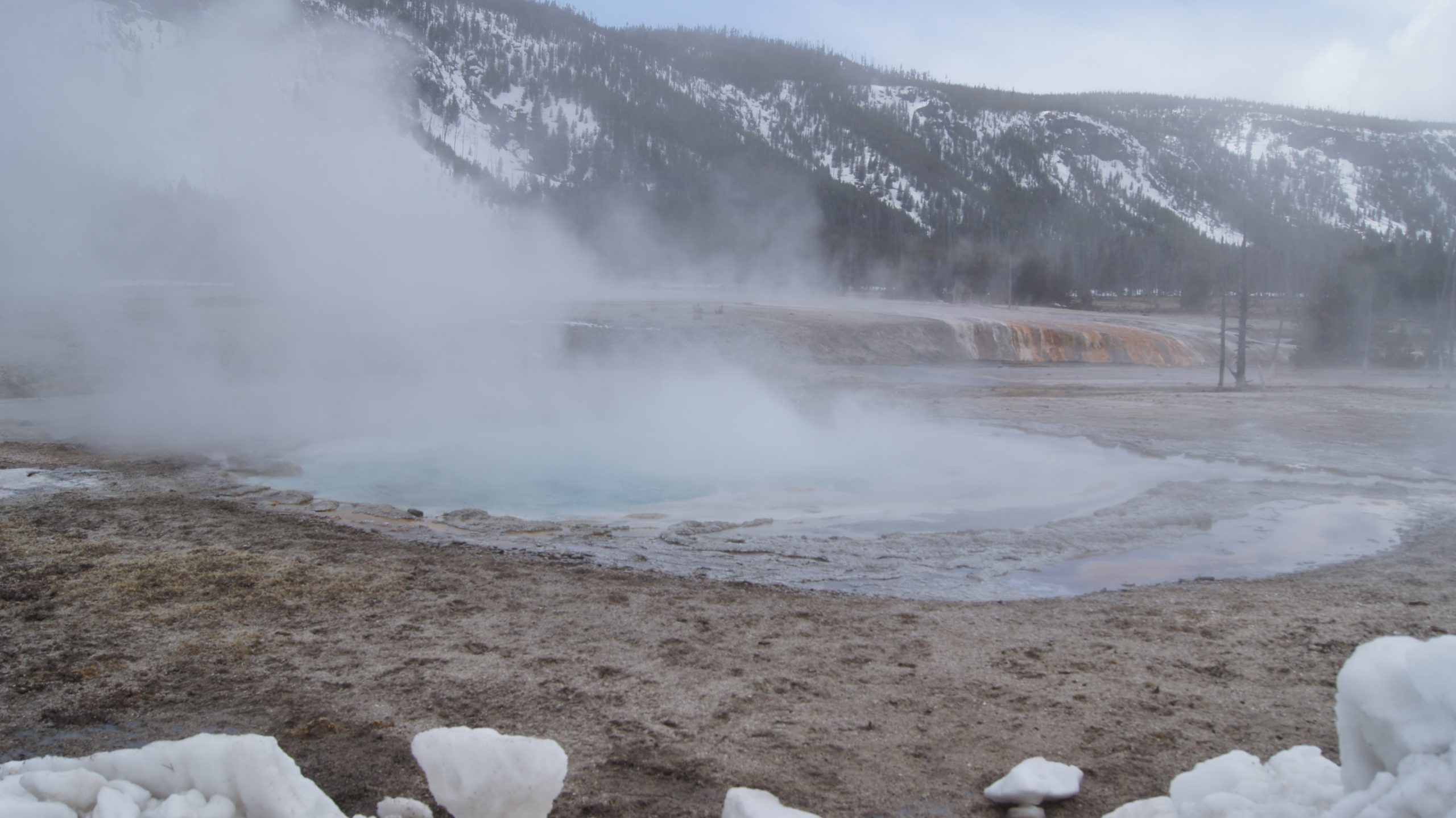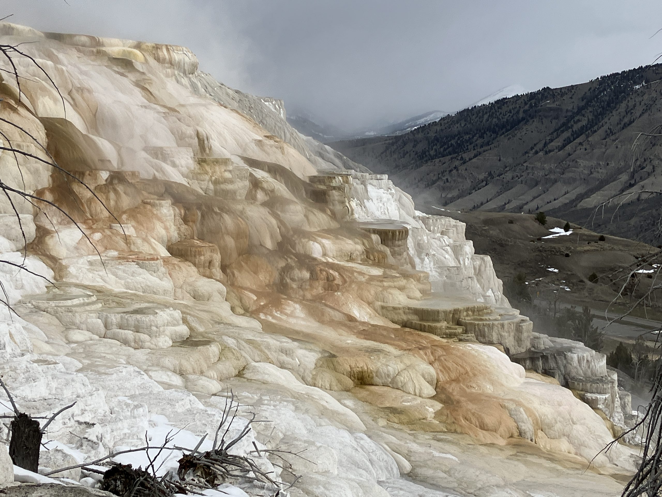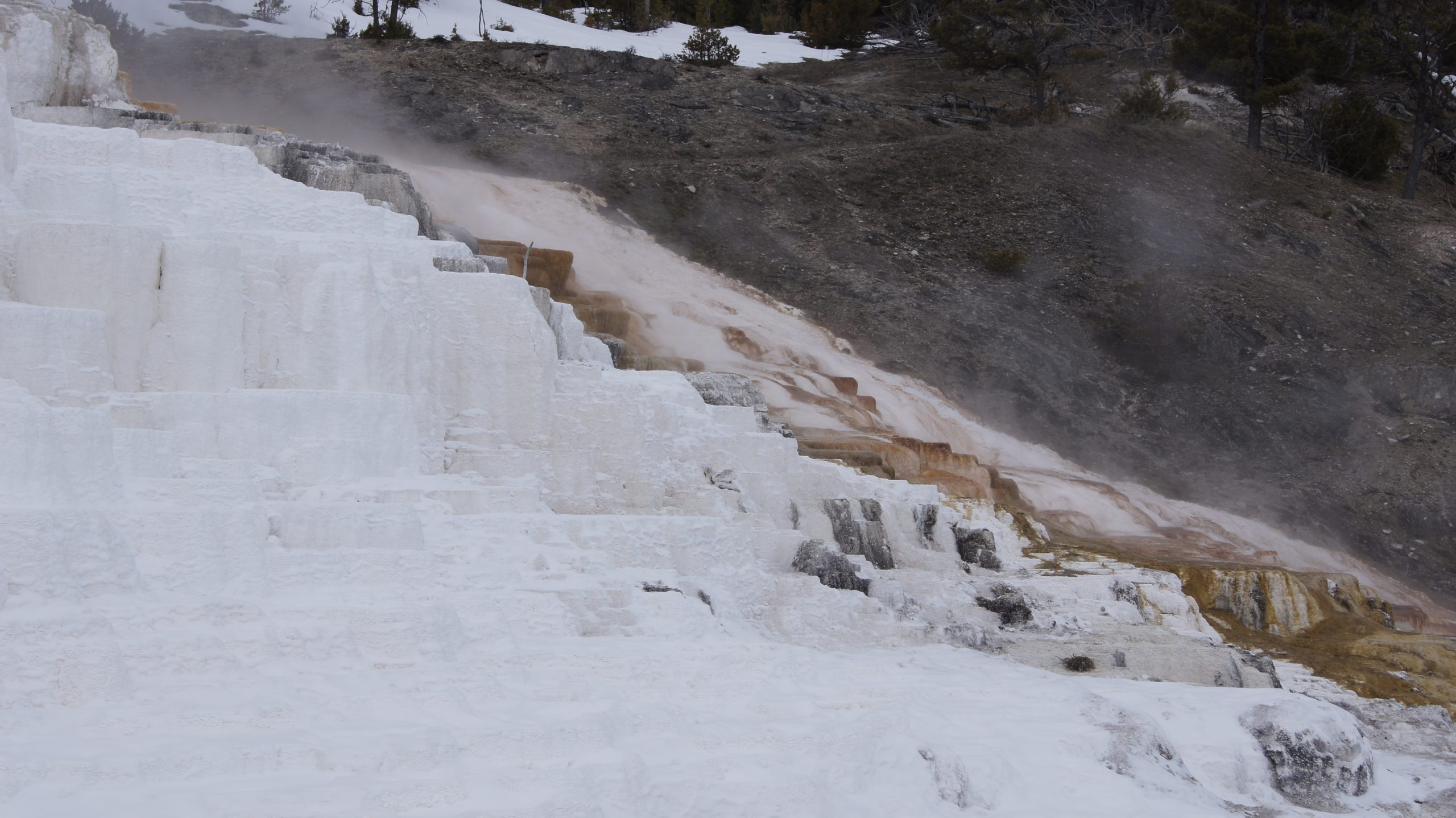 Zuerst sind wir ganz in den Norden gefahren, dort haben wir uns Mammoth Hot Springs angeschaut.
