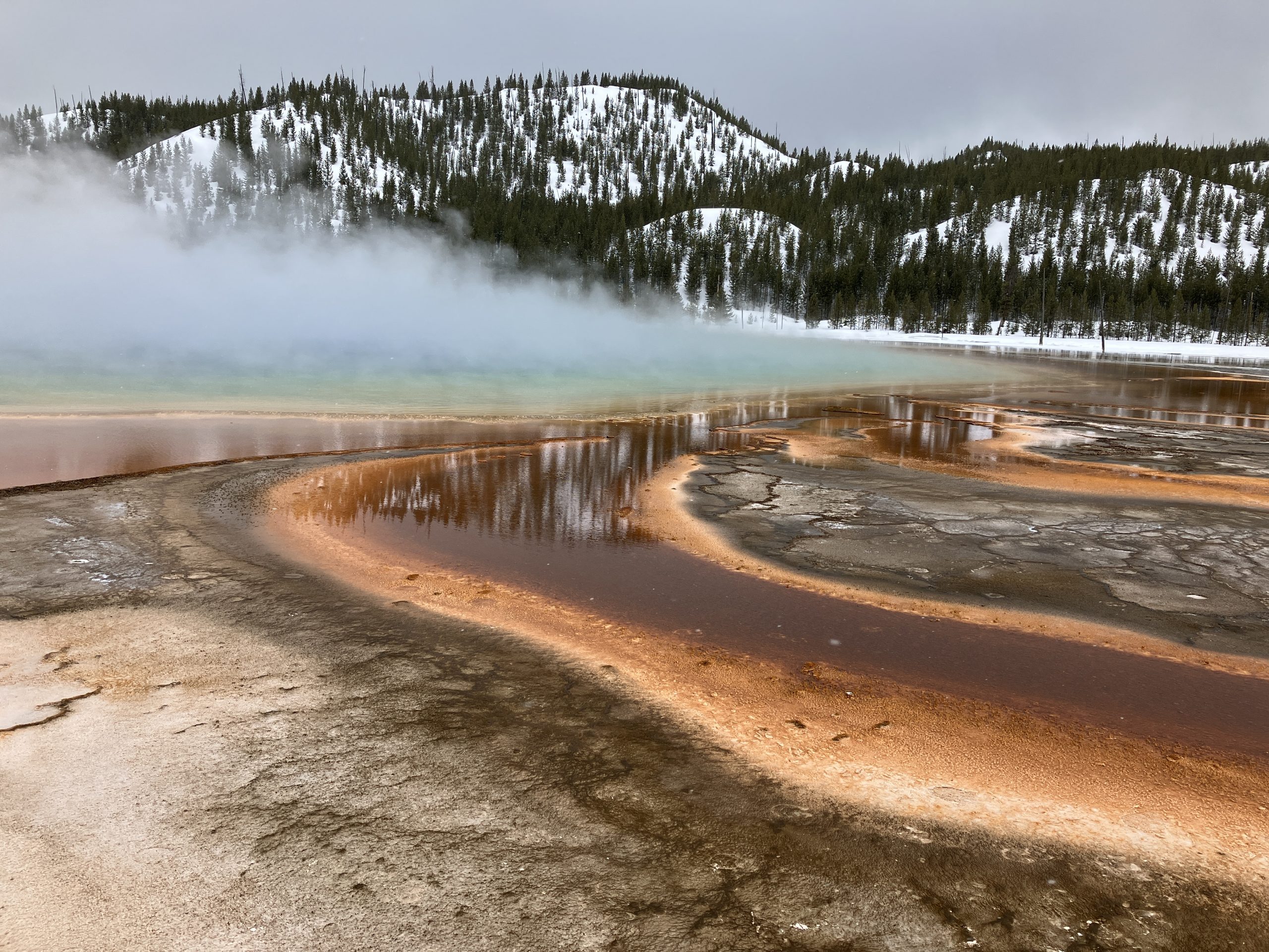 Später ging es dann über verschiedene kleine Aussichtspunkte in den Süden des Parks. Dort haben wir es pünktlich zu Ausbruch des Old Faithful geschafft vor Ort zu sein.